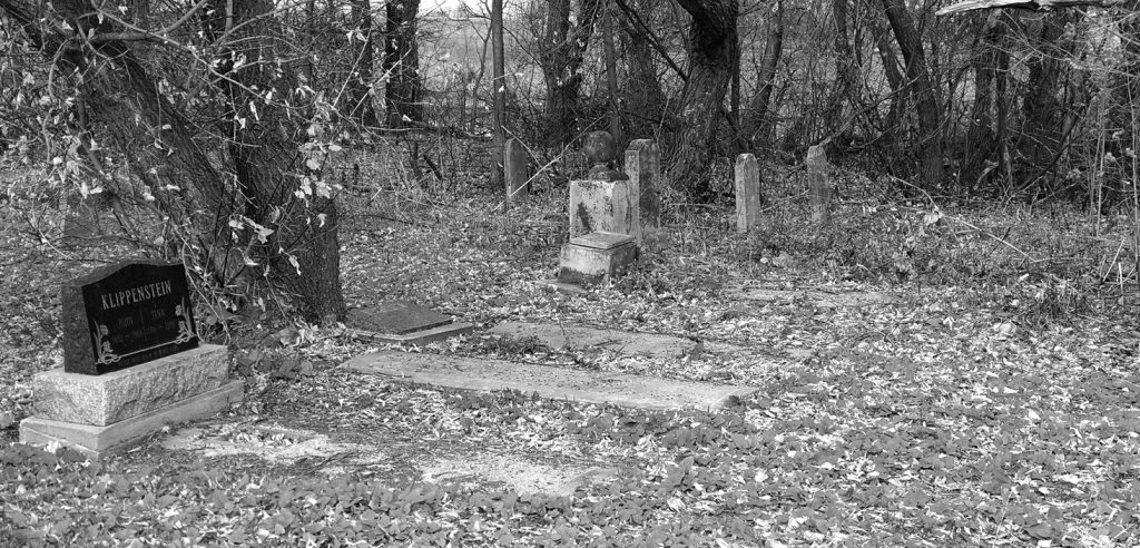 The most northerly of the village residents, possibly Mr. Johann Wieler, apparently offered land free of charge to be used as a cemetery. It would run up against the creek bank to the west and to the north. Presumably it was assumed that caretaking and maintenance would need to be divided somehow among the other residents. One doesn’t know if burial fees of any kind existed at first. It would be ten years or more until the first burial took place there.
