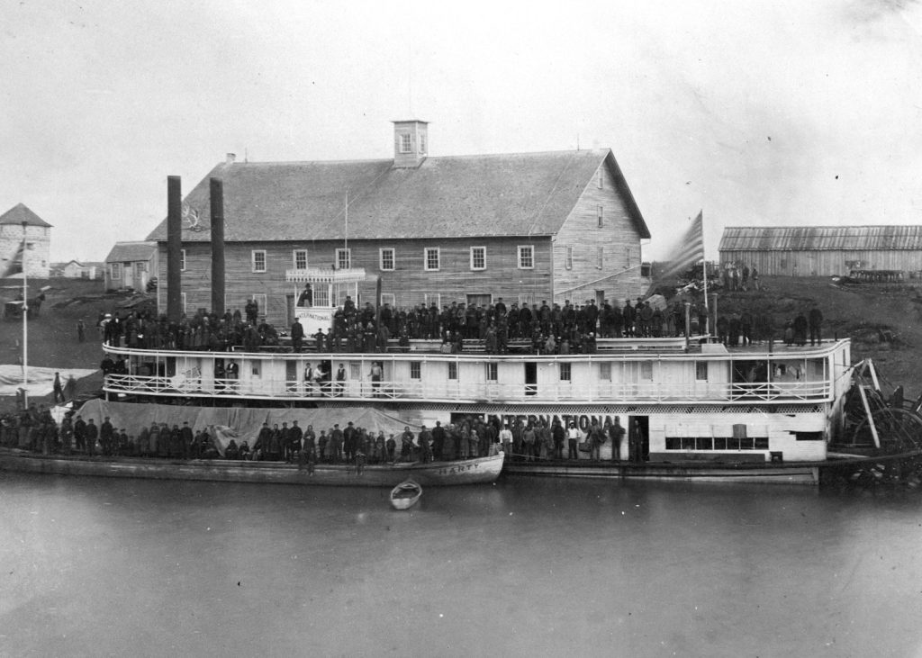 Monday afternoon at one-thirty we boarded the Pacific Railway train and headed for Moorhead, Minnesota, slept fitfully during the train ride and disembarked at six o’clock in the morning on Tuesday, July 28. We stayed outside until four o’clock in the afternoon when we boarded a barge that was towed behind a steam powered tugboat and began the journey down the Red River. This river flows north between wooded and sometimes open banks. The trip down the Red River was, because of the countless hoards of voracious, biting mosquitoes, distinctly lackluster. The torture they inflicted on us in the open flatboat was something we had never before experienced. “No wonder that Pharaoh released the children of Israel from their bondage after the plague of flies,” (Ex. 8:24) he soliloquized. Eventually, at nine o’clock p.m. on July 31 we arrived in Winnipeg.