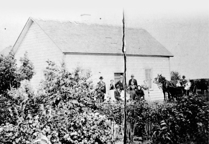 We, my brother Peter and I formed a partnership and filed jointly. Together, my wife and I, Peter’s wife and two children, our dear mother, sixty-one years of age and Sister Helena, age fifteen, built a dwelling of sorts, on the northwest quarter, west of the marshy creek, for the first winter. Our building materials were reeds (bulrushes), which grew in abundance in the flats close by, and some purchased rough boards and hand cut rails for walls and rafters. The reeds were tied in small bundles and placed on the roof. On the inside the cracks between the boards and rafters were pasted over with paper to keep out drafts. The underside of the rafters were lined with the rough boards and plastered with paper as well. When the boards dried out the paper ripped, losing even that bit of effectiveness. In these primitive quarters we six spent our first winter in Canada.
