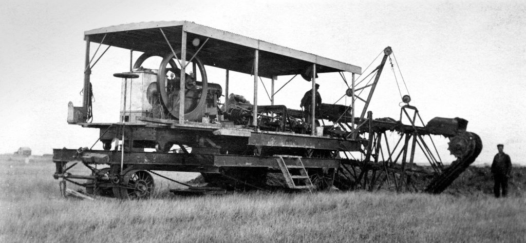 There are conflicting stories on what inspired Brandt to design and build the dredge. One source says the aqueduct captured Brandt’s imagination.13 Another indicates Brandt was commissioned by James Forestall of St. Pierre in 1912 to build a dredge. It was needed to dig canals and ditches for land drainage in the local municipality.14 One source says the dredge was bought back by Brandt and Friesen.