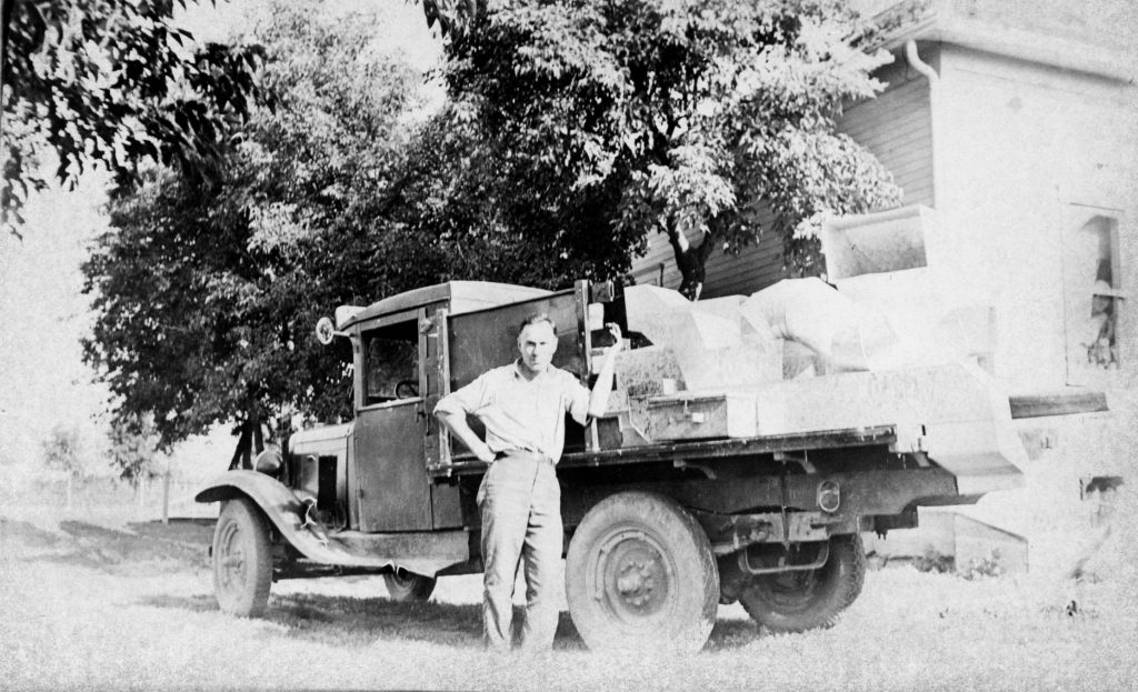 Since Klaas Brandt’s career kept him away from the family home for long periods of time, the family found other ways to interact. They often met in Portage la Prairie, the halfway point for both Klaas and his wife and children. Son Henry would drive the family in the Model T Ford and upon arrival they would enjoy a picnic lunch likely of ham sandwiches on Helena’s home baked brown bread accompanied quite possibly by “Brandt” mustard. Brandt also included his grandchildren in his work. From age ten to about fourteen, grandson Dave Brandt served as Klaas’ roadman on land surveys. Together, they surveyed many of the lots in present day Steinbach. Dave’s pay at the end of the day was always a Coca-Cola and chocolate bar when they got home, a treat the young boy always relished.