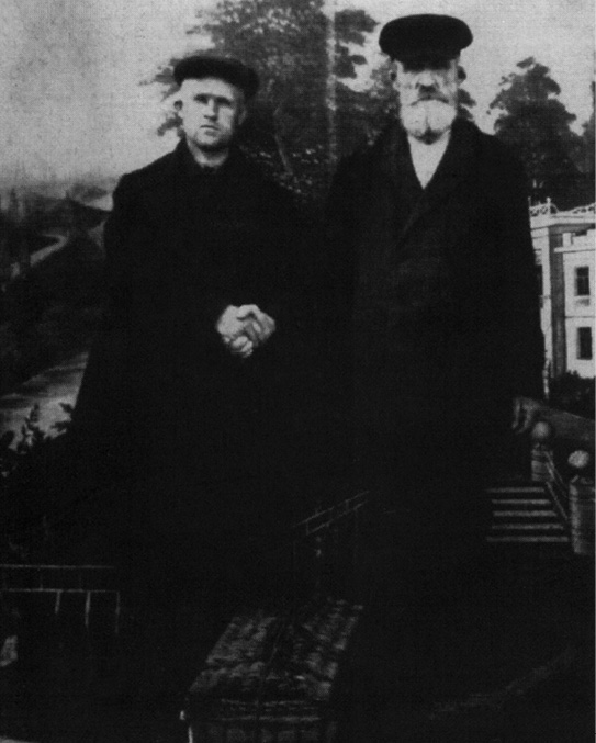 Johann Eitzen was living in Zentral at the time of his second arrest and imprisonment in Borisoglebsk, Voronezh province. He was arrested for the crimes of being a minister and having had contact with the German embassy. He was one of thirty individuals arrested at this time for counter-revolutionary activities, specifically the organizing of mass emigration of the ethnic Germans in Zentral.17 Johann was arrested on February 28, 1933, following which he was imprisoned and tortured, according to family sources.18 On the reverse side of a photo of him and his son Daniel, a time span for Johann’s imprisonment is given: “1933, 1 March, to 1933, 20 June.” Johann was the oldest of the prisoners. Isaak states that Daniel had been instructed to fetch his father from the prison.19 He died within days of being released, on June 17, 1933,20 at the age of nearly sixty-eight. His wife Maria died one month later.