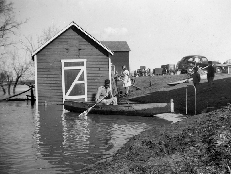 Combing the archives with an eye to water not only illuminates the environmental realities of the West Reserve; it also highlights the visceral experiences of living near creeks, deepening our historical awareness of water in a corner of the Prairies not always known for its waterways. Springtime especially created lasting childhood memories for those who grew up near creeks in the mid-twentieth century. The breakup of ice on Buffalo Creek could be “noisy,” with huge pieces of ice piled up and standing on end,51 and “when the water came” along the creeks south of Winkler, “you heard it; the sound . . . like a whoosh.”52 High water brought increased vehicle traffic to the creeks, as people came to see the extent of the flooding or, in some years, to watch dynamite being used to try to break up ice floes.53