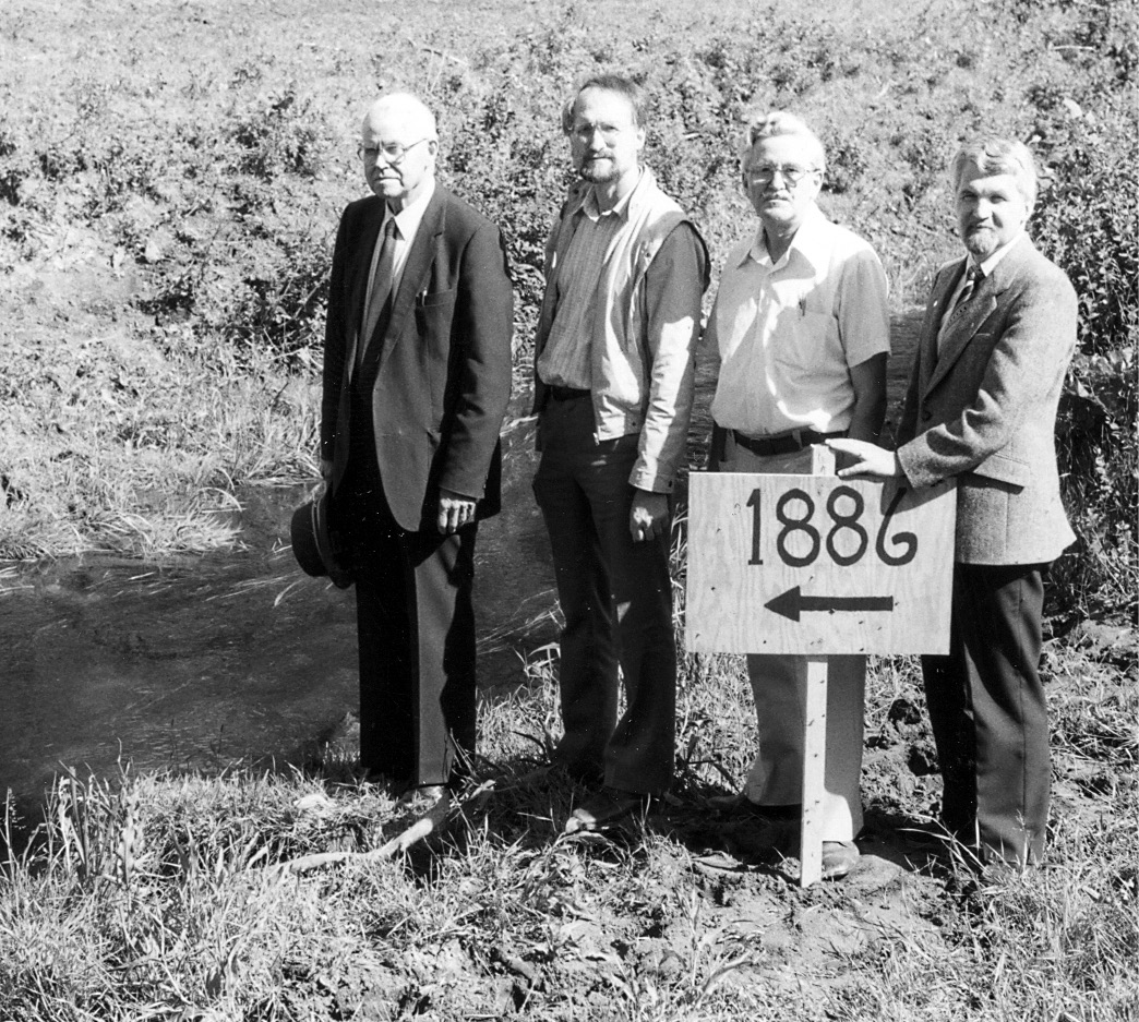 Within the generally flat character of the West Reserve’s landscape, the water, wooded areas, and wildlife of the creeks comprised distinct and unique environments, with opportunities for different experiences in all seasons. As the Echo remarked in the summer of 1947, “Buffalo Lake has an unusual attraction for outdoor lovers during these fine summer days. If it isn’t fishing and wiener roasts it’s boating. The latter was jolly fun for a group of seven local girls Tuesday morning.”61 The opportunity for a more “unusual” recreational environment within a prairie agricultural setting commonly drew people to the creeks and the nearby Pembina River62 for school, youth, and Sunday school events, as well as church events such as baptisms. The first Mennonite Brethren baptism in the West Reserve was held in May of 1886 “near Burwalde in the Dead Horse Creek,” and in subsequent decades baptisms in the Gnadenthal Mennonite Brethren Church “were usually held in the little creek running between Gnadenthal and the Blumengart Colony.”63
