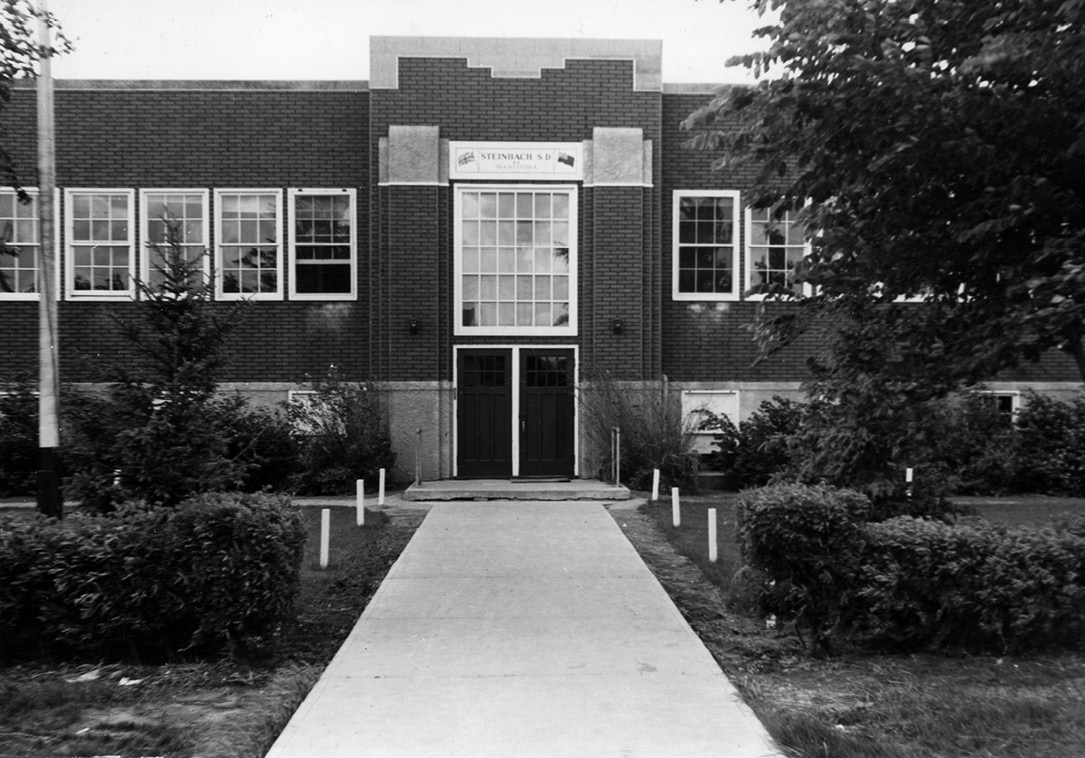As the growing population of Steinbach, Manitoba, and the surrounding district exerted more and more pressure for classroom space in the 1930s, trustees decided on the construction of a new building for a high school.1 It was recognized that, for years, “our high school students have had a hard time of it, in the basement [of the old school] with cold feet and warm heads, or squeezed together in a little room in the balcony [of the Mennonite Brethren church] or sent out to the distant territories or sheltered in abandoned store buildings, etc.” The school board called a public meeting in January 1936, and “136 versus 32 [attendees] voted for an expansion for the school, requiring six new classrooms.”2 Some ratepayers objected to spending such a large amount of money in hard economic times, but once the project had received approval, it moved ahead at a rapid pace. A $20,000 loan was floated from the Royal Bank, and Jacob F. Reimer, Isaac Wiens, and F. W. Sawatzky were engaged as head carpenters at thirty-five cents an hour, with Sawatzky earning an extra ten cents an hour as foreman. Excavation for the basement began in April 1936 at what was then Barkman Street (now 2nd Street) at the intersection of Reimer Avenue, west of Main Street. By September, “a large, handsome, well-lighted building stood ready for use.”3 The staff, all of whom had their bachelor of arts degrees, consisted of Julius Toews, principal (science, mathematics, and history), Jacob G. Kornelsen (German, science, mathematics, and history), and Linda Braun (English).