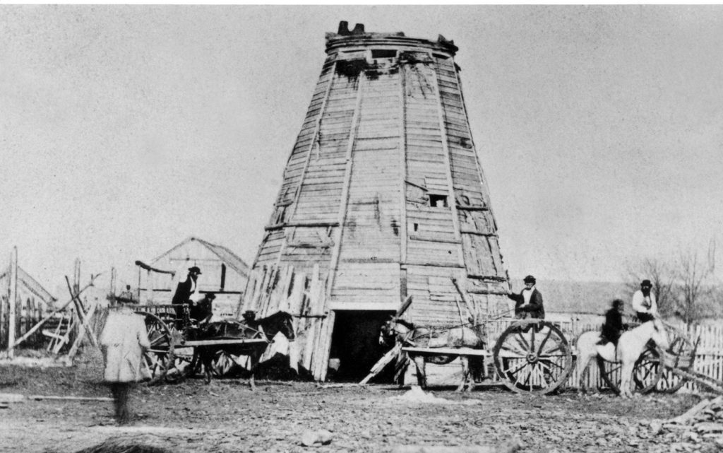 When the Bergthal and Kleine Gemeinde Mennonites immigrated to Manitoba in 1874, their steamboat stopped at the meeting of the Red and Rat Rivers. It was here that “the women and children were loaded on ox carts and taken to immigration sheds about five miles away.”12 Jacob Y. Shantz, a Mennonite businessman from Ontario, had been hired by the government to construct these immigration sheds for the Mennonites. In a letter to the surveyor general, J. S. Dennis, he wrote: “I have selected a plan to the best of my ability, most proper for to put up the building as it is not far from the boundary of the reserved township, but there is a little lake there and the nearest place to get wood also.”13