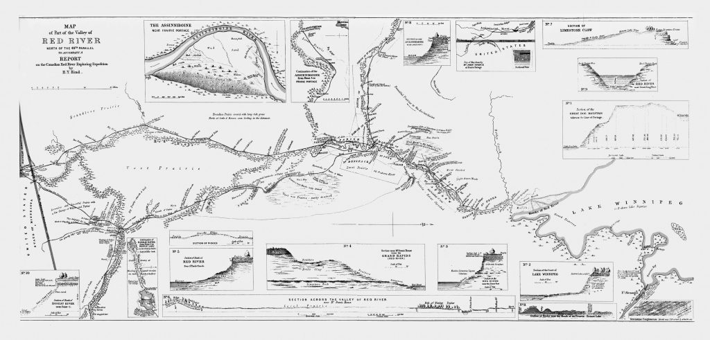 The group followed the Crow Wing Trail as they travelled back to Winnipeg. In Winnipeg they split up, with one group going to the United States and the other staying to inspect what would become the West Reserve.